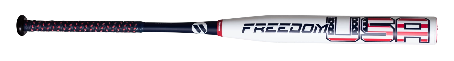 The 2022 Worth Freedom USSSA Slowpitch Softball Bat features the standard 2 1/4 inch barrel diameter, 13.5″ barrel length, balanced swing weighting, and is legal for play in all USSSA, NSA, and ISA Slowpitch Softball Leagues and Tournaments.