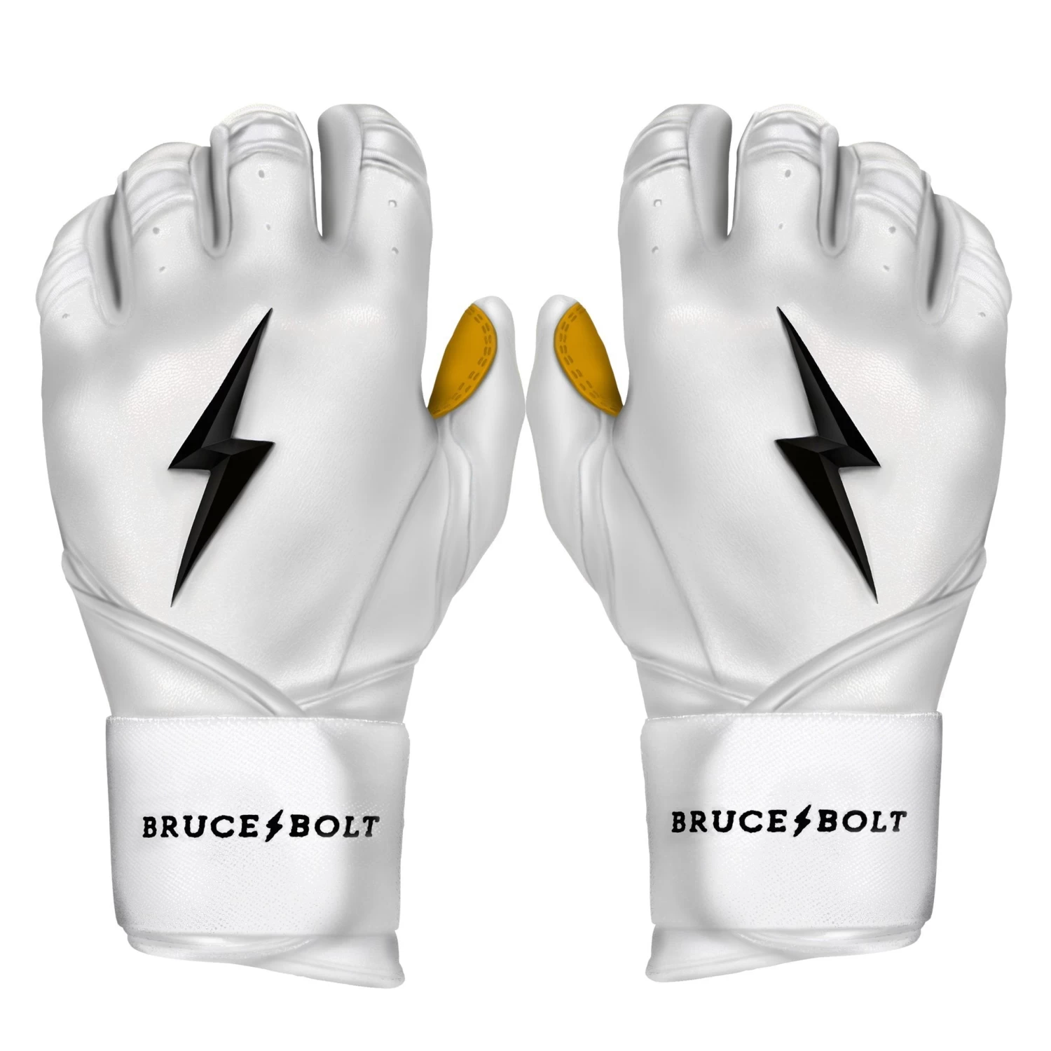 BRUCE BOLT is the newest name in baseball. Their White Premium Pro Long Cuff batting gloves are some of the highest quality, best fitting, most durable gloves in the game. They’re made from the ultra premium 0.9mm Cabretta leather and feature a proprietary Double Inverse Cuff System which creates a more powerful swing and unmatched wrist support at the point of contact. Each pair of BRUCE+BOLT gloves are handmade by highly skilled craftsmen. It’s unlike any other glove out there.