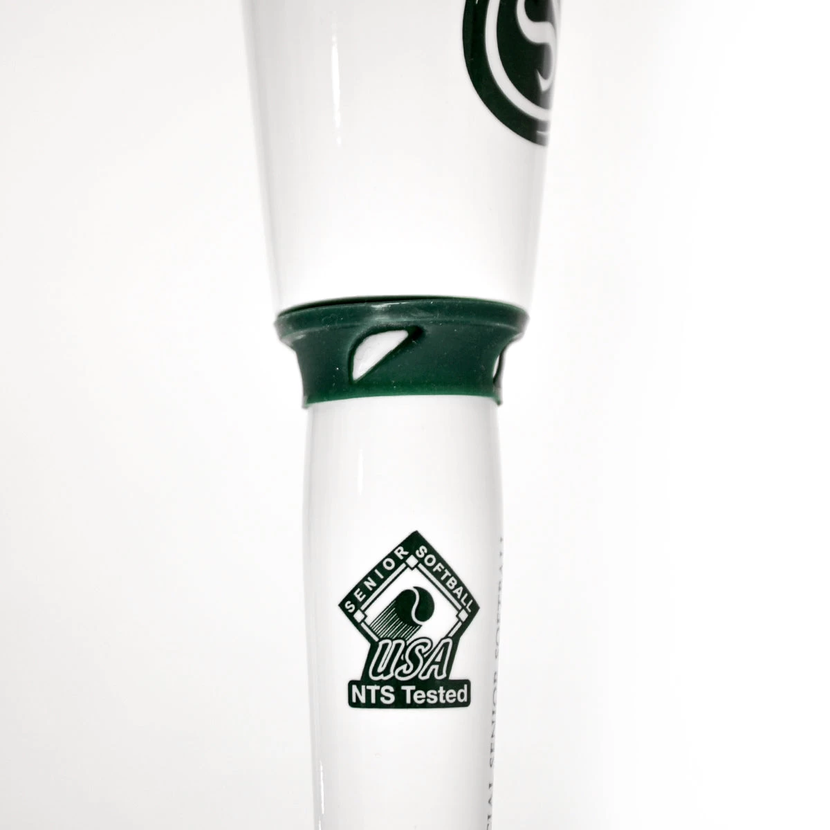 The brand new Louisville Slugger Ritch’s Superior 2.0 Senior Slowpitch Softball Bat features the standard 2 1/4 inch barrel diameter, 13 inch barrel length, and is approved for SSUSA Senior Softball Leagues and Tournaments. This new glossy white & green bat has the same swing weight as the legendary green machine and is available in 26 and 27 ounces.